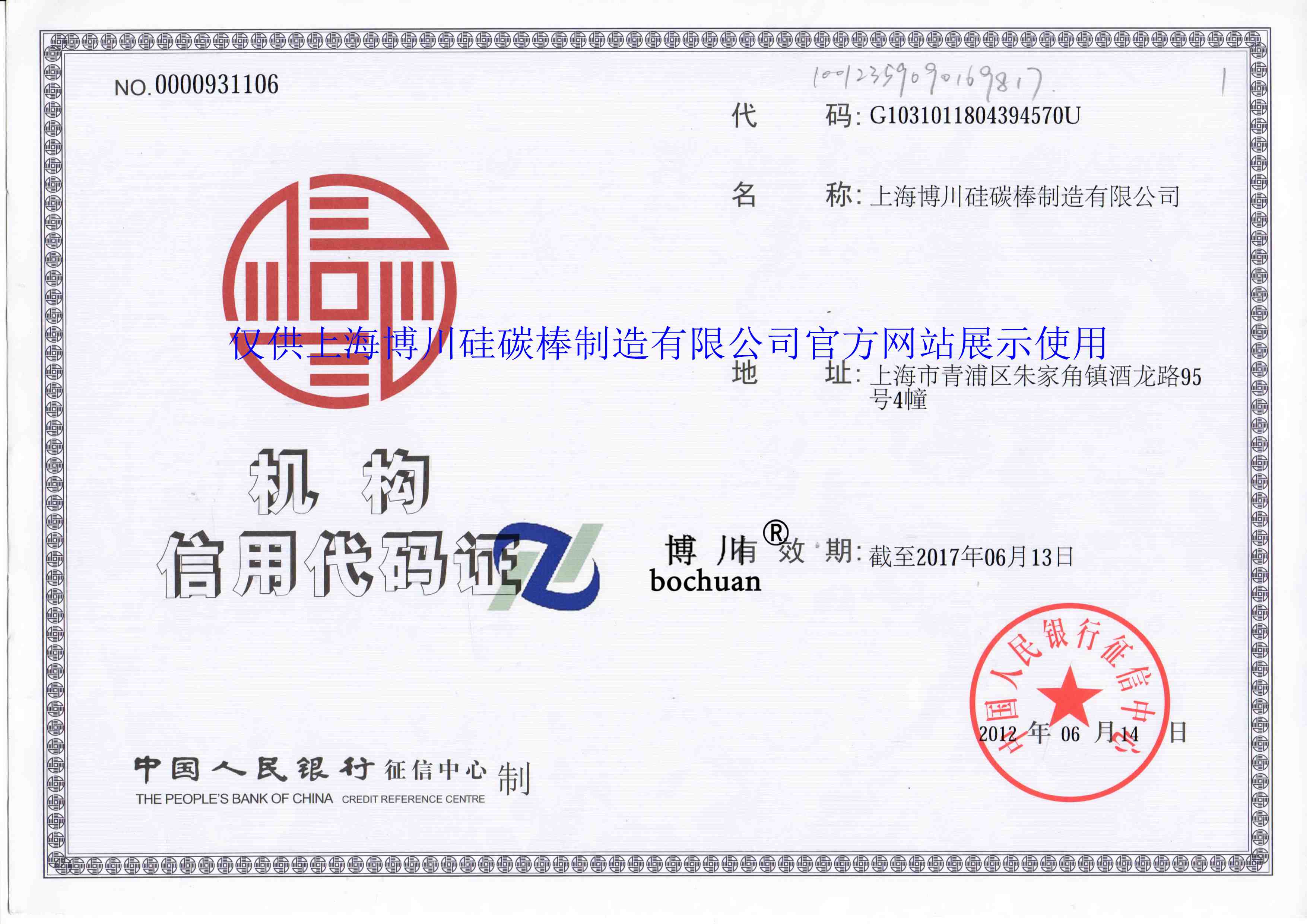 机构信用代码证