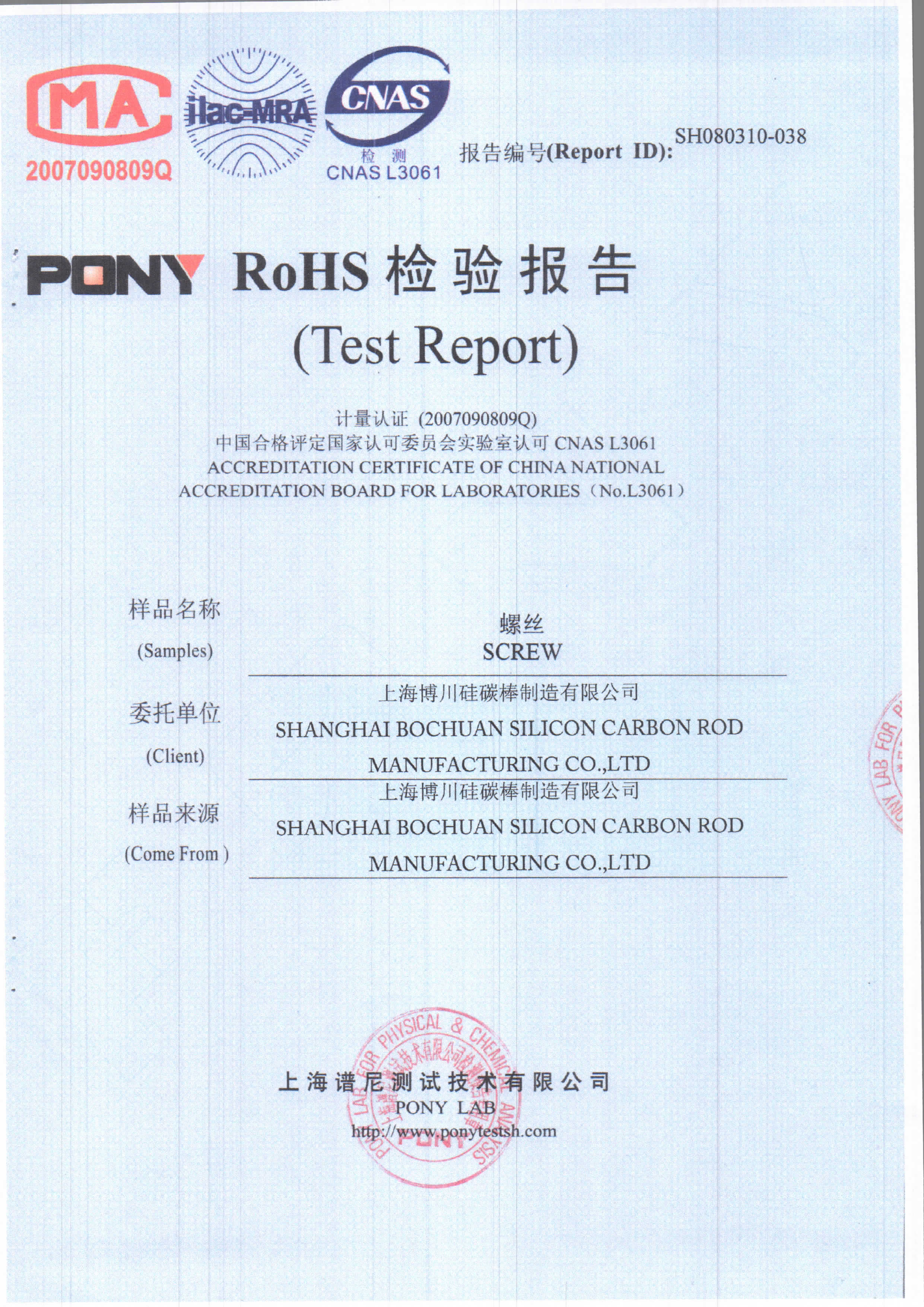 博川产品检验报告-螺丝
