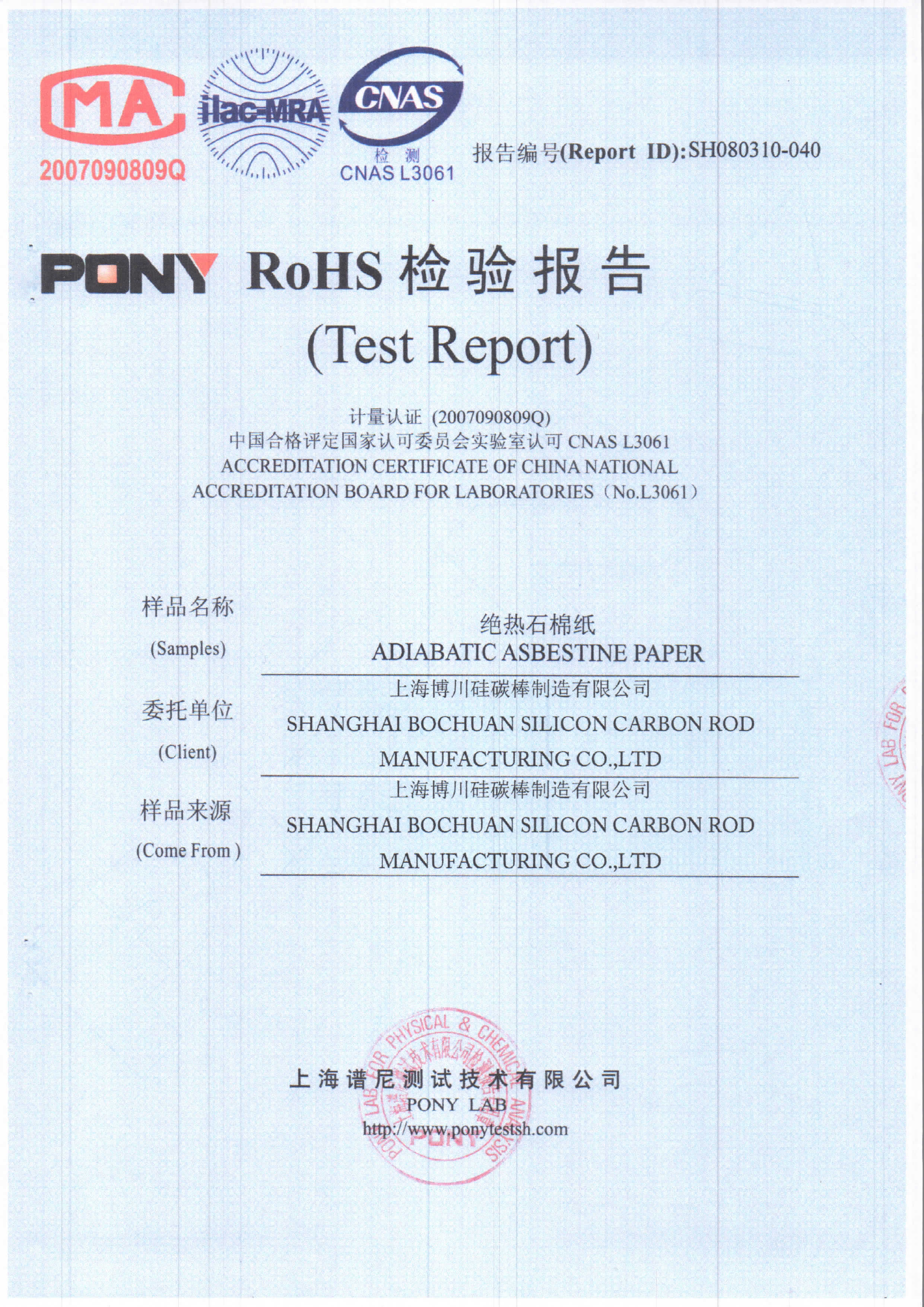 博川产品检验报告-绝热石棉纸