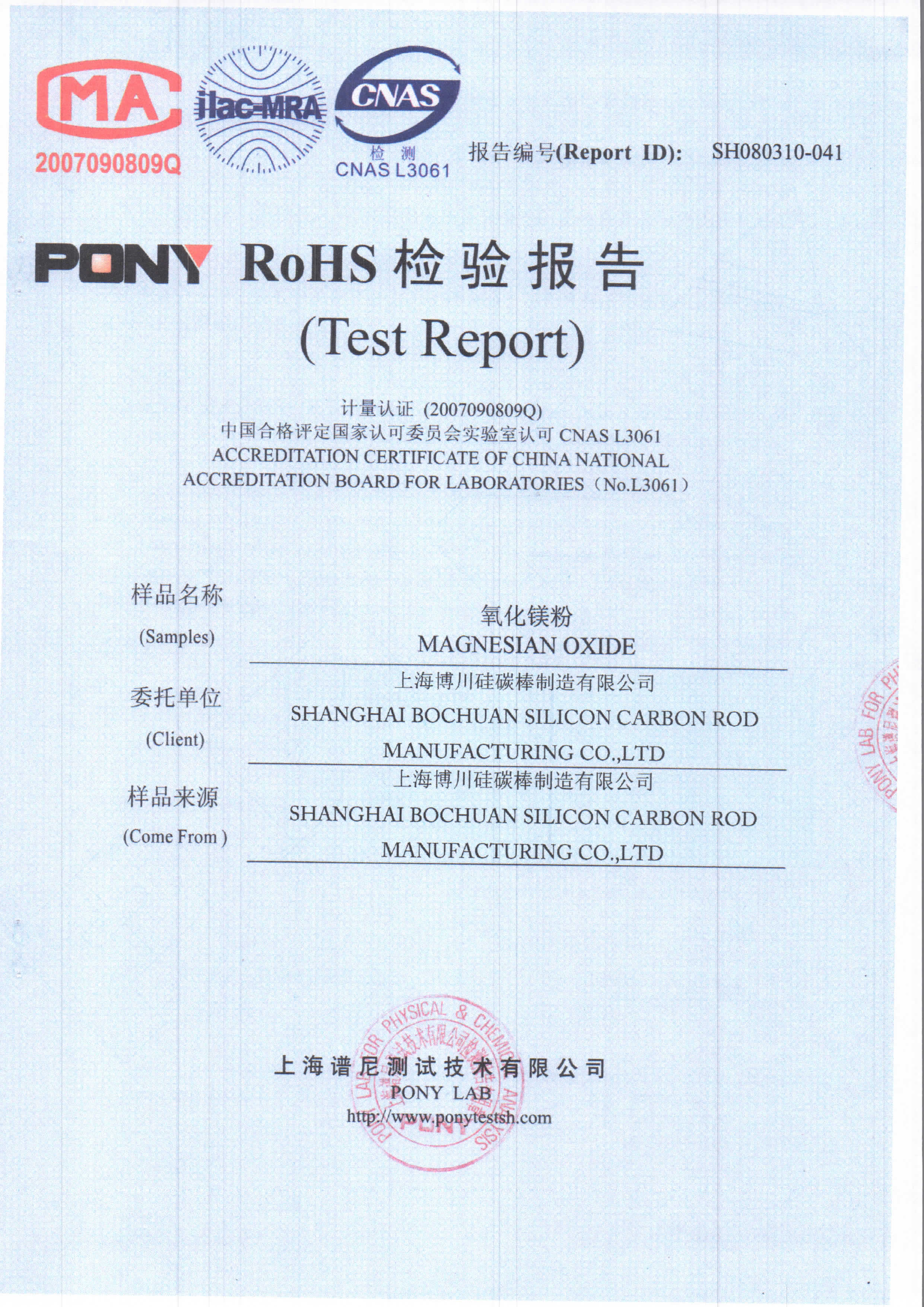 博川产品检验报告-氧化镁粉