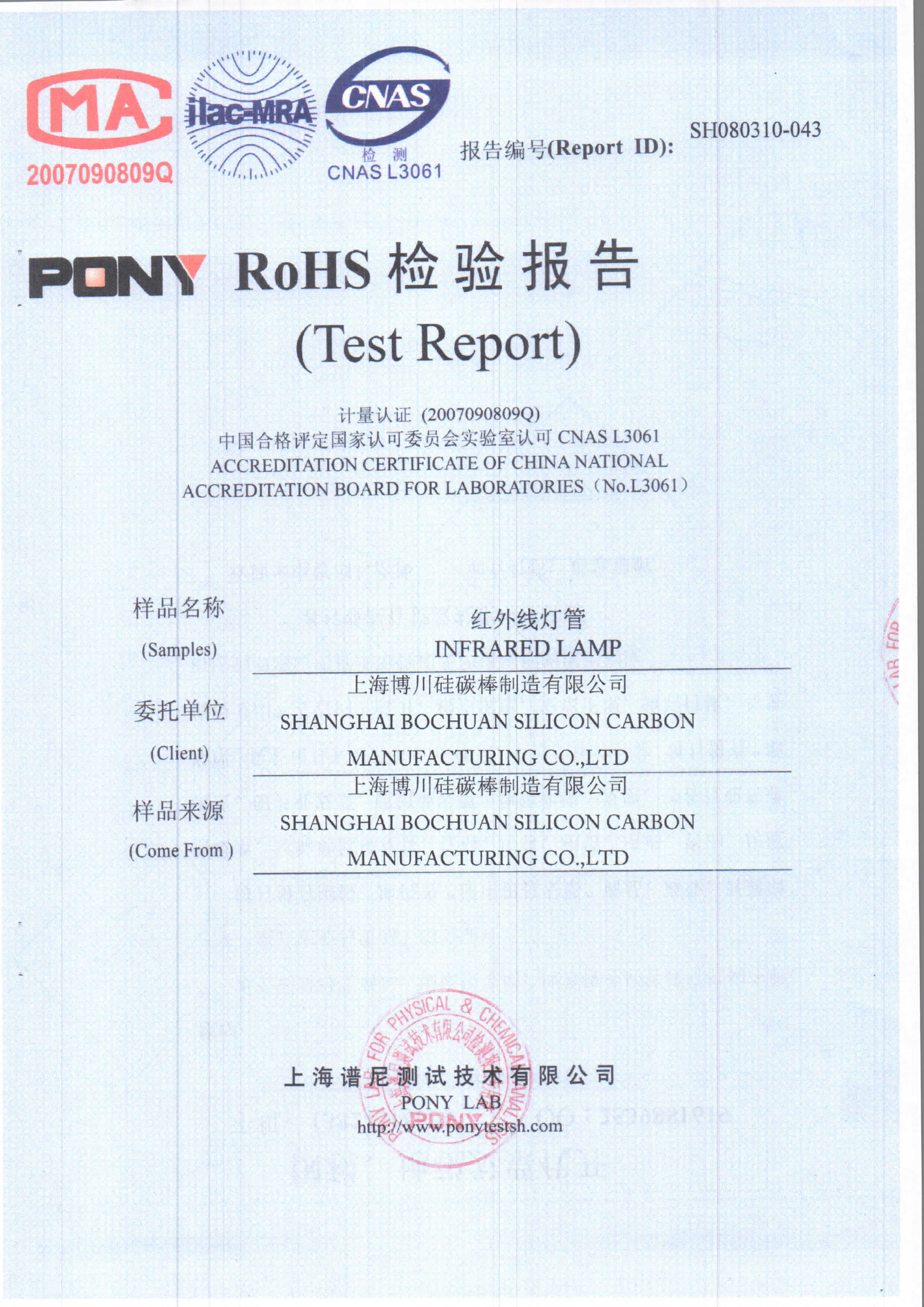博川产品检验报告-红外线灯管